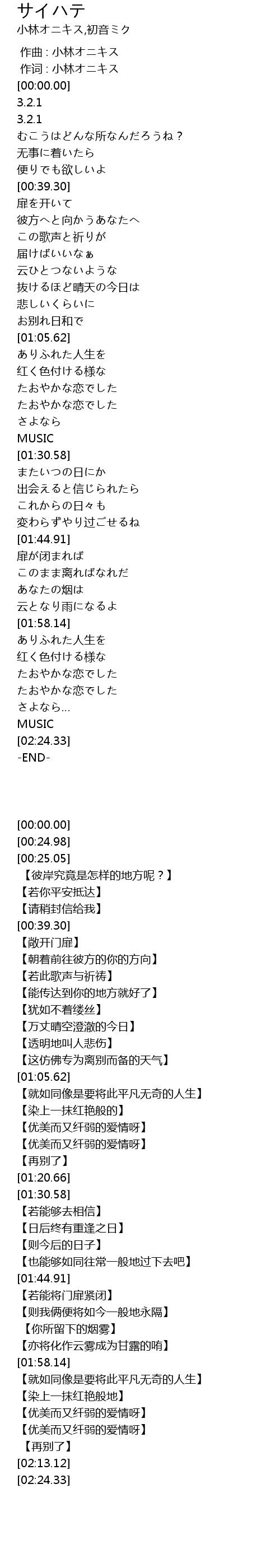| [01:17.94] | さよなら |