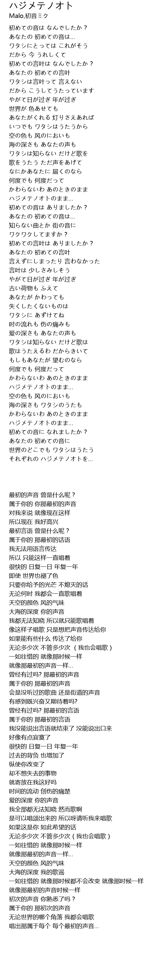 | [00:39.000] | 初めての言叶は なんでしたか? |