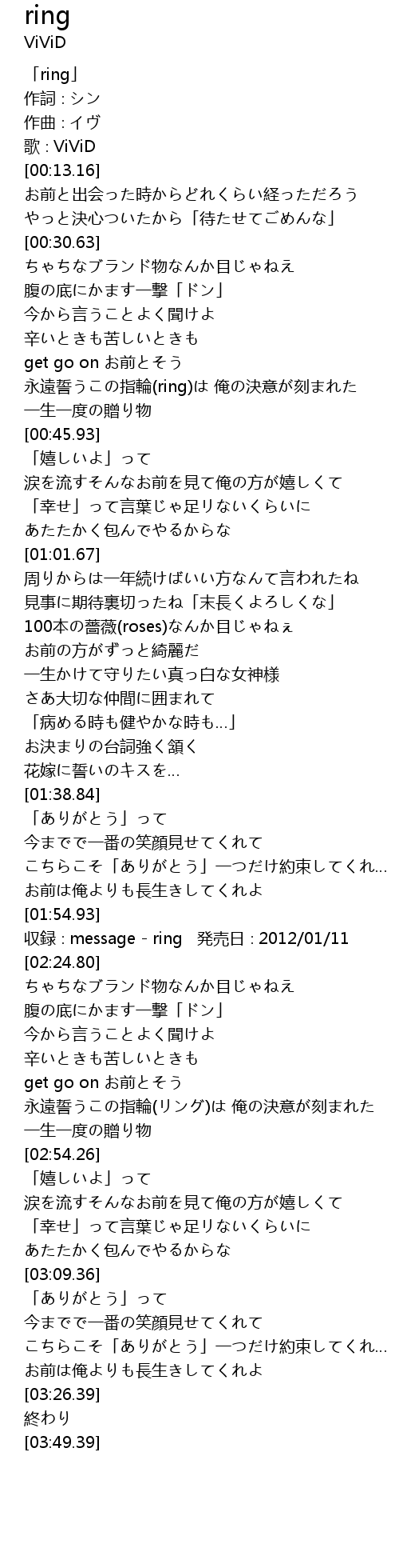 | [02:19.80] | 収録∶message - ring 発売日∶2012/01/11 |