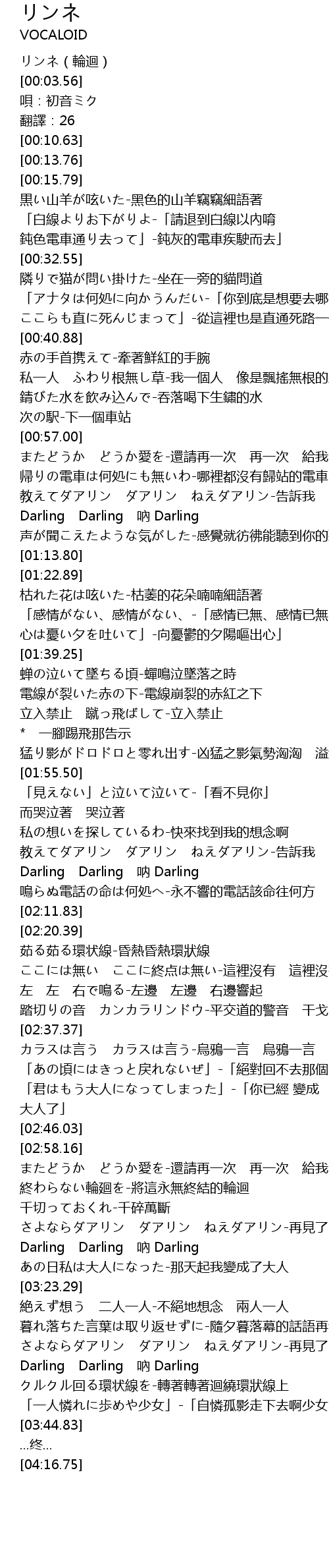 | [00:02.57] | リンネ(輪迴) |