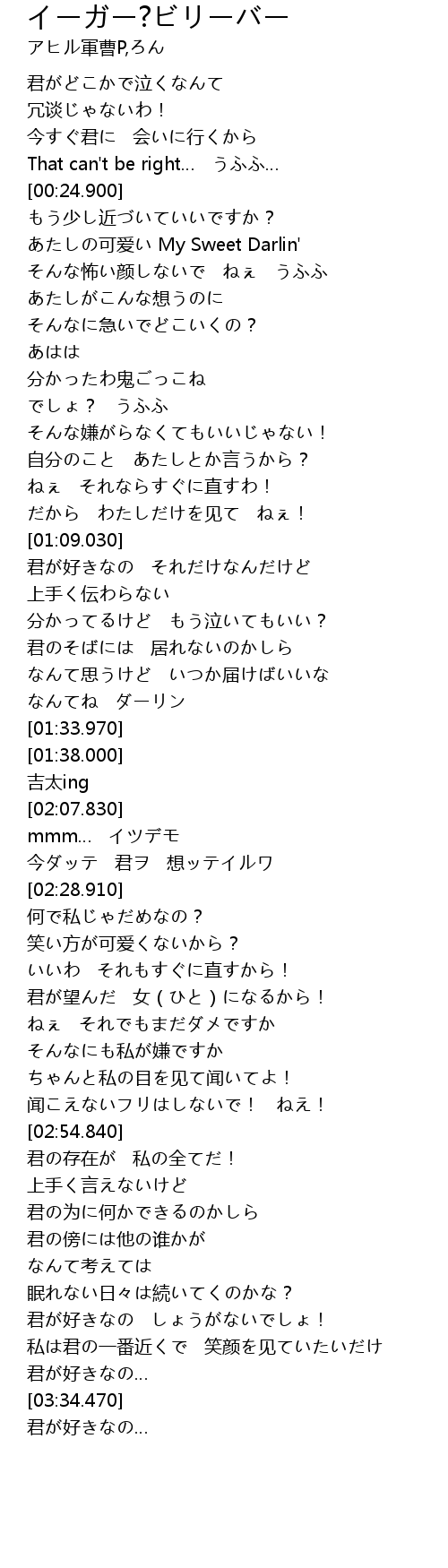 | [01:31.240] | なんてね ダーリン |