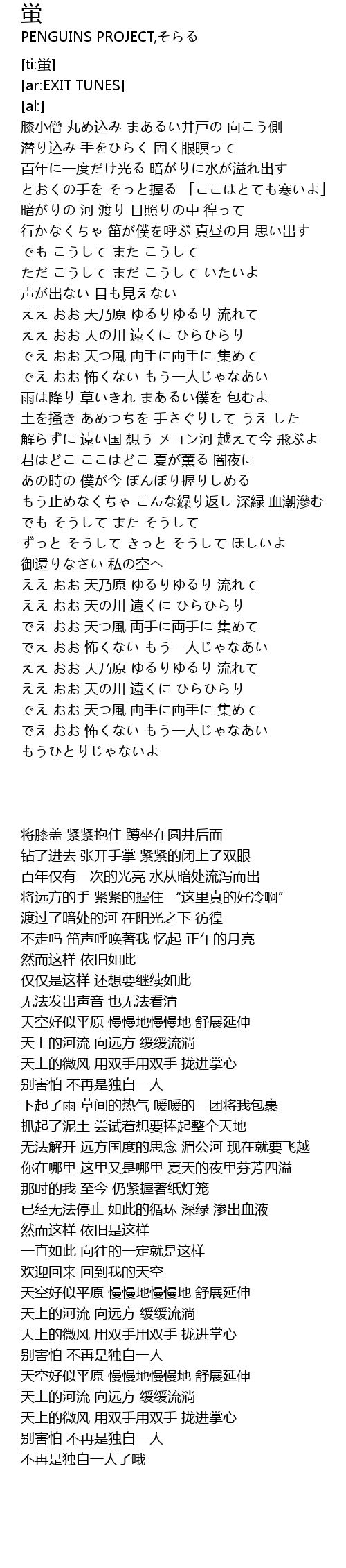 | [02:31.37] | 那时的我 至今 仍紧握著纸灯笼 |