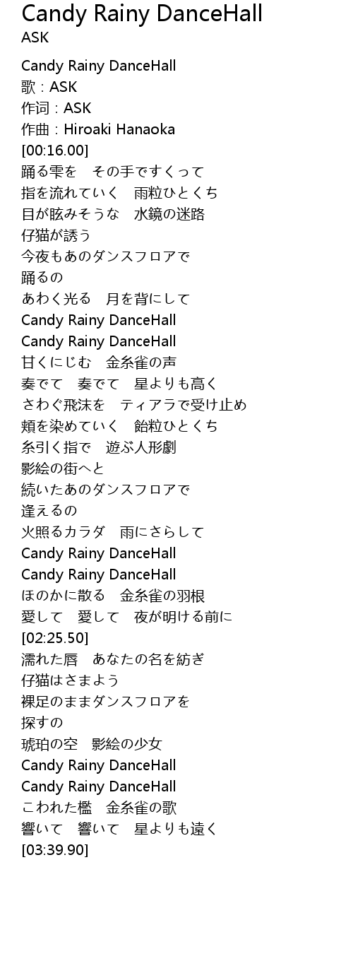 | [02:08.95] | Candy Rainy DanceHall |