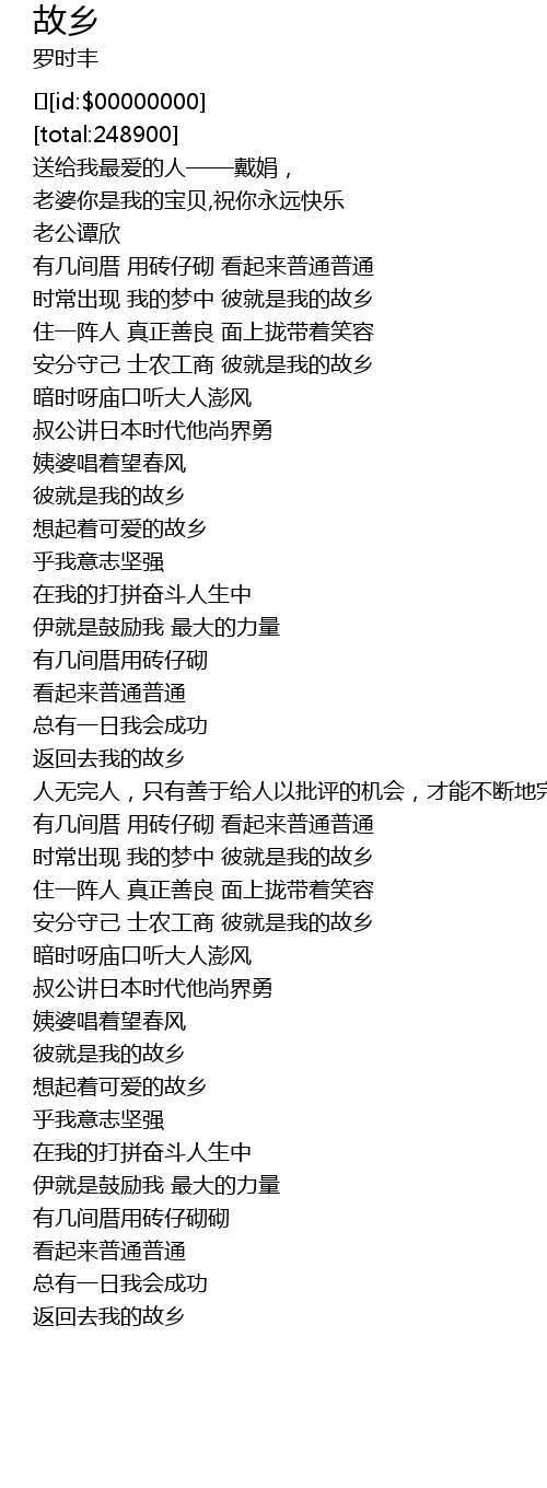 | [00:27.550] | 时常出现 我的梦中 彼就是我的故乡 |