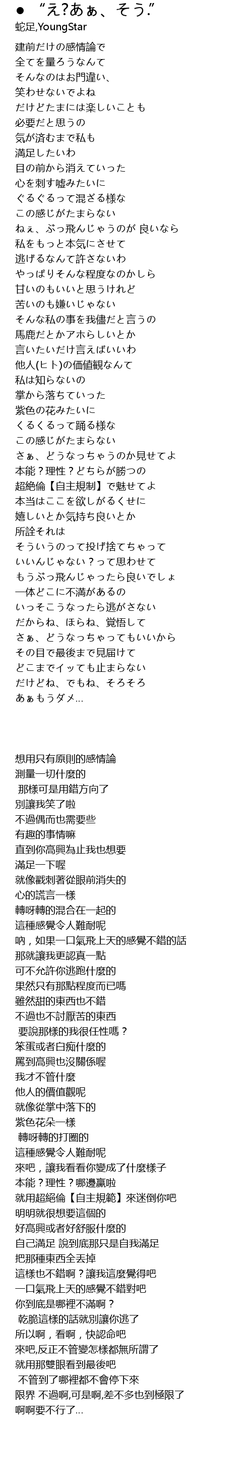 | [01:35.85] | 超絶倫【自主規制】で魅せてよ |