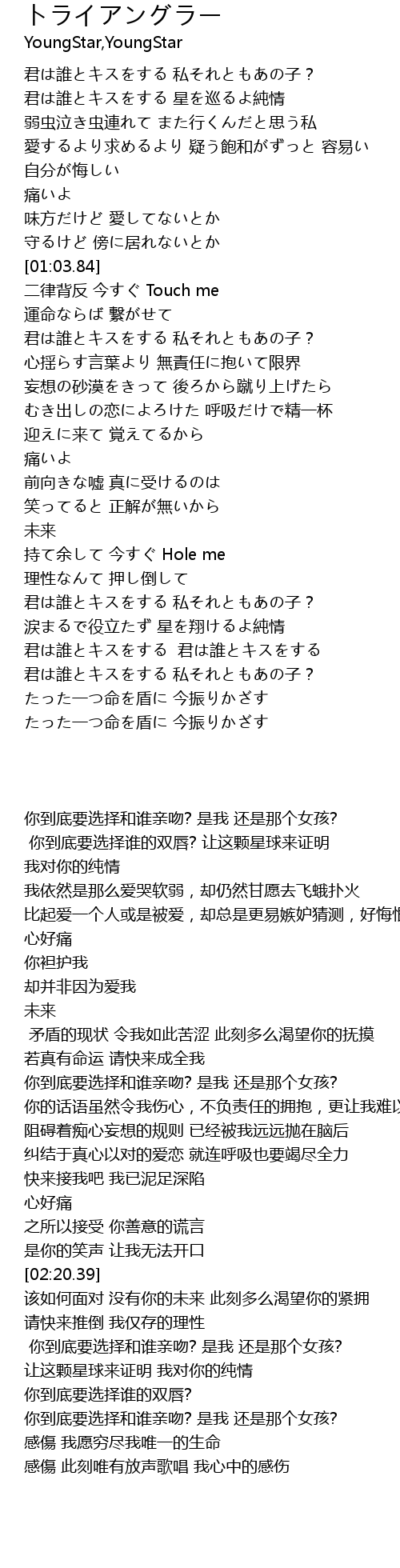 | [02:34.38] | 你到底要选择和谁亲吻? 是我 还是那个女孩? |
