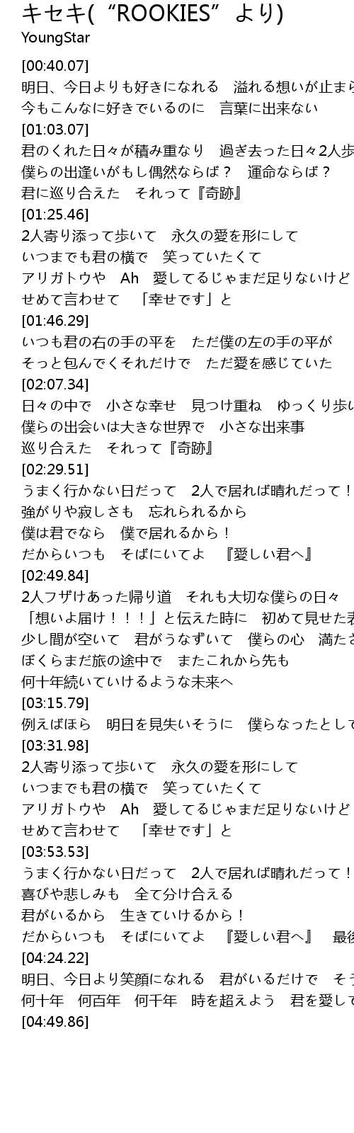 | 歌曲 | キセキ(“ROOKIES”より) |
