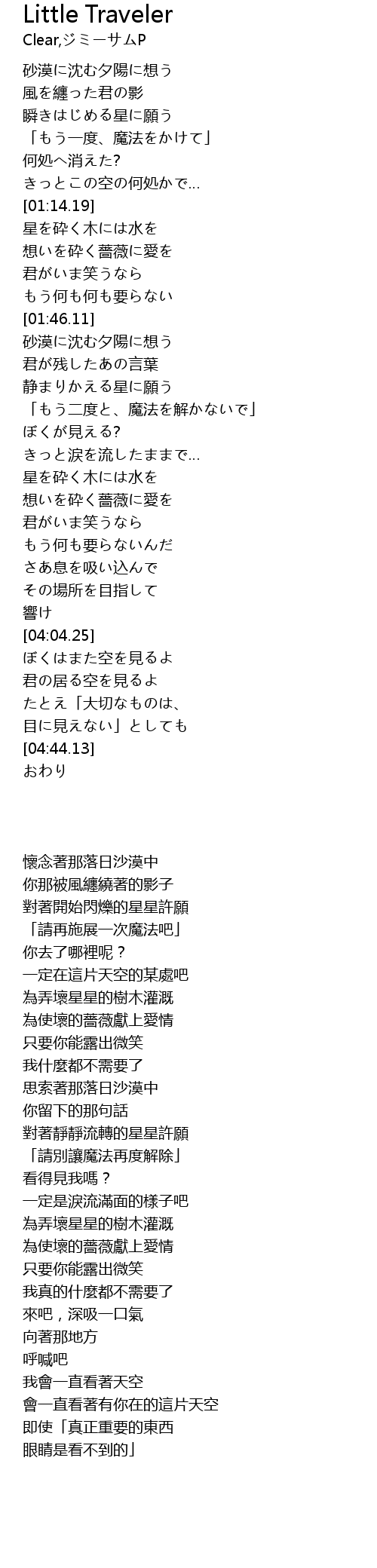 | [02:49.75] | 「もう二度と、魔法を解かないで」 |