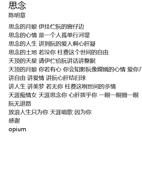 | 思念的人生 讲到阮的爱人啊心肝凝 | |