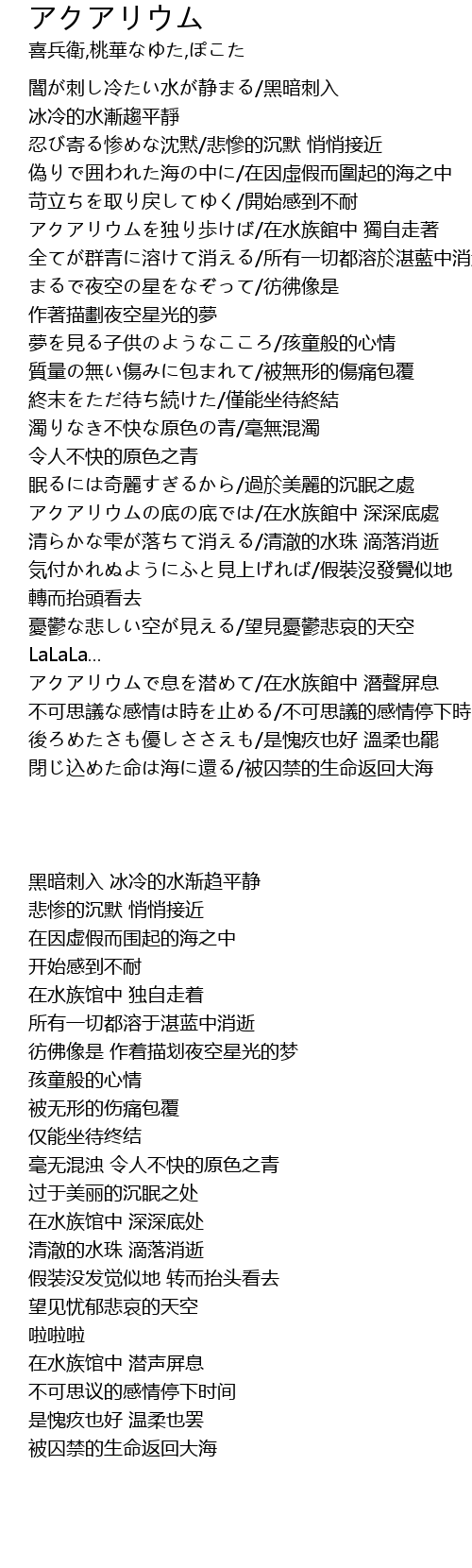 | [02:47.450] | アクアリウムで息を潜めて/在水族館中 潛聲屏息 |