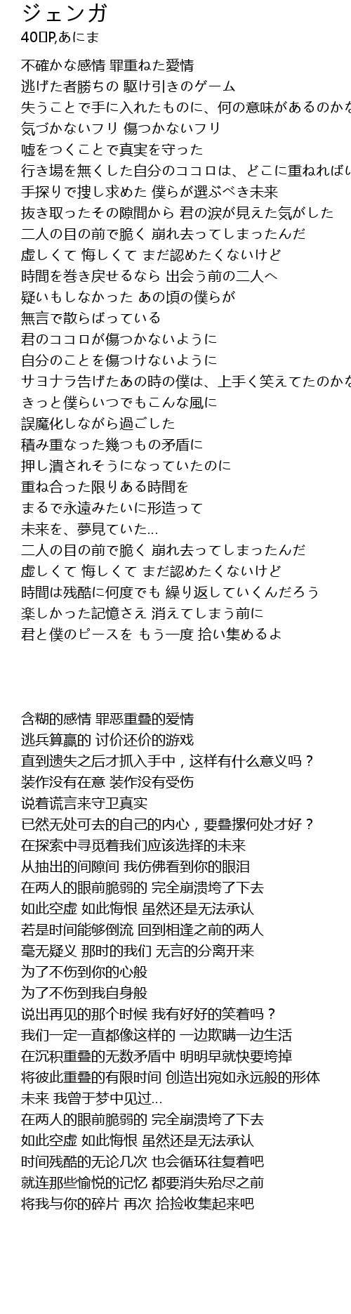 | [00:31.59] | 不確かな感情 罪重ねた愛情 |