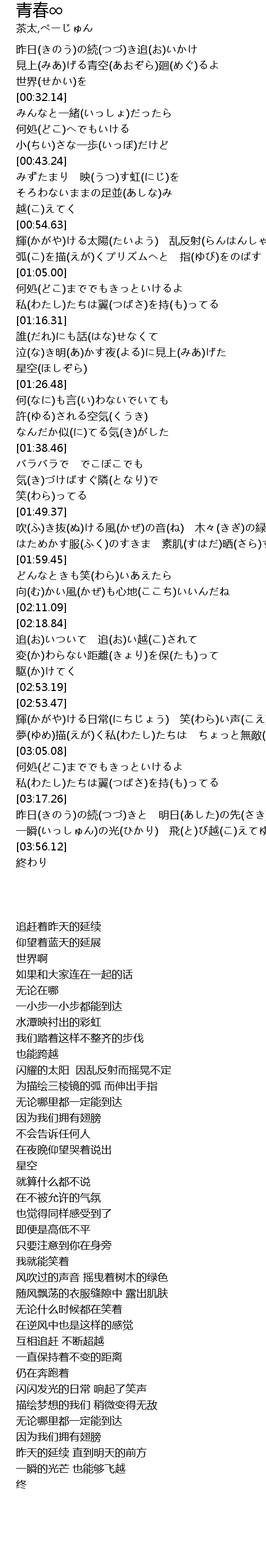 | [02:05.35] | 向(む)かい風(かぜ)も心地(ここち)いいんだね |