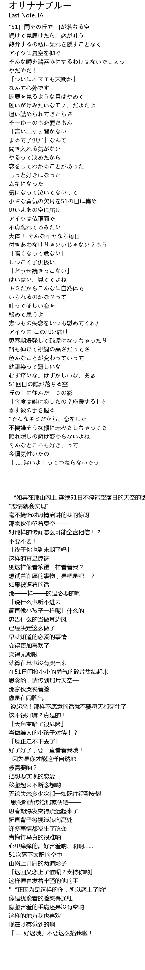 | [00:00.80] | "51日間その丘で 日が落ちる空 |