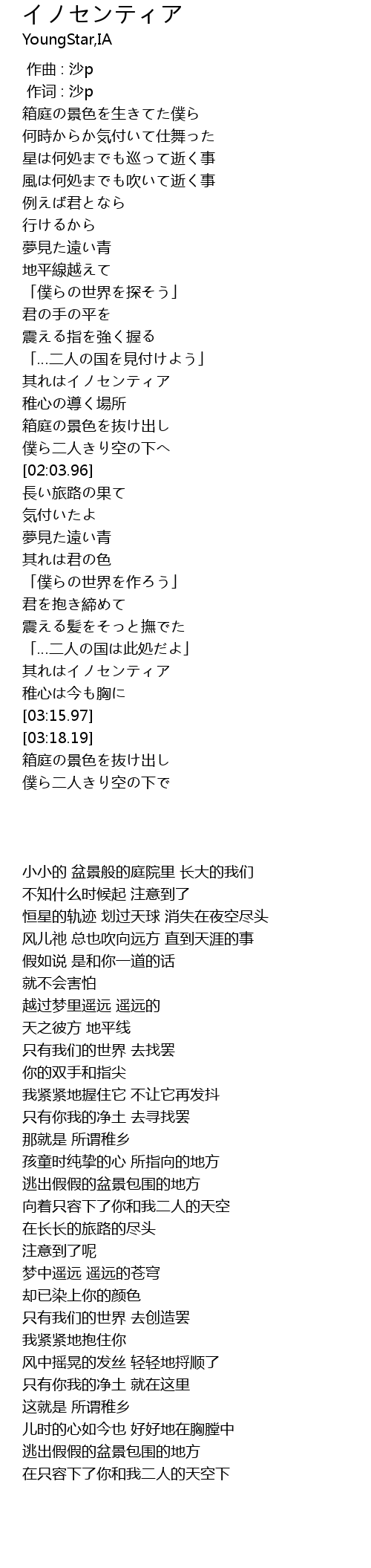 | [00:19.08] | 箱庭の景色を生きてた僕ら |
