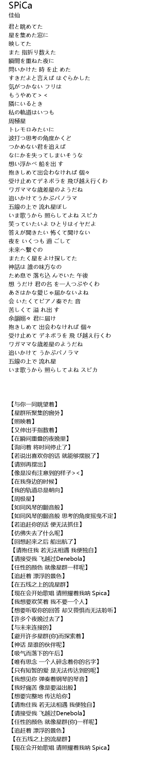 【现在会开始歌唱 请照耀着我呐 Spica】 |