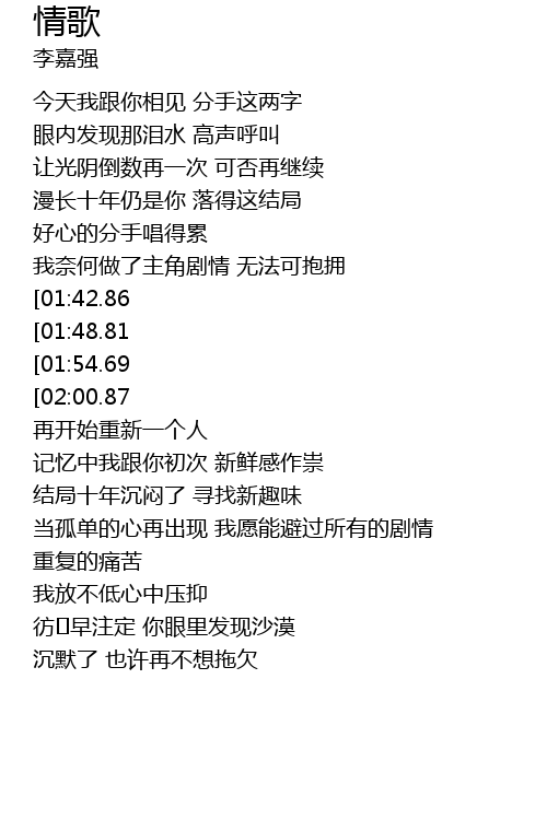| [00:43.27] | 今天我跟你相见 分手这两字 |