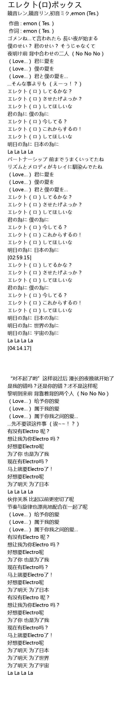 | [02:37.12] | 好想要Electro呢 |