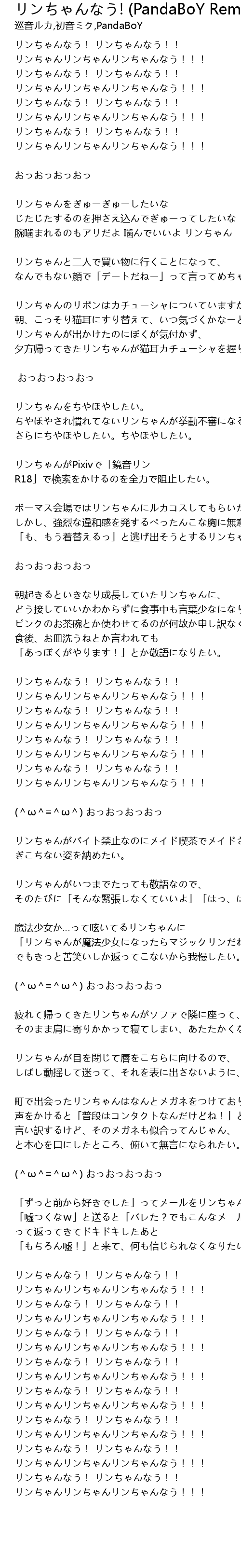 リンちゃんなう! リンちゃんなう!! リンちゃんリンちゃんリンちゃんなう!!! |