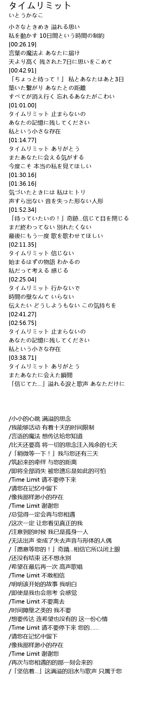 | [03:25.92] | /Time Limit 请不要停下来 您的…… |
