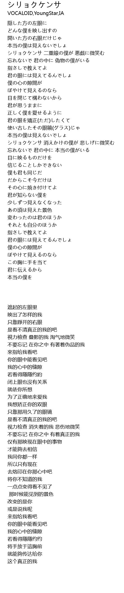 | [01:00.15] | 視力檢查 叠影的我 淘气地微笑 |