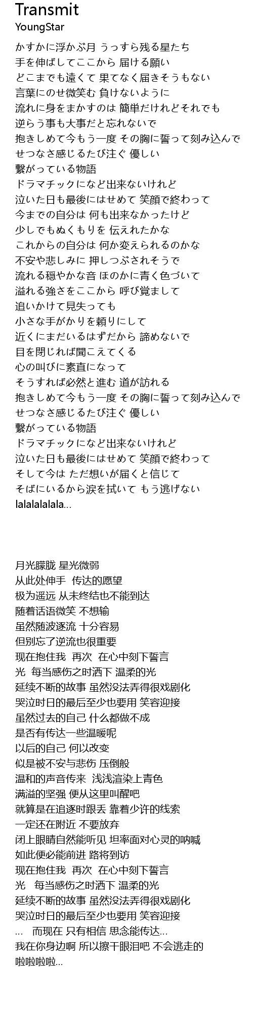 | 歌曲 | Transmit |