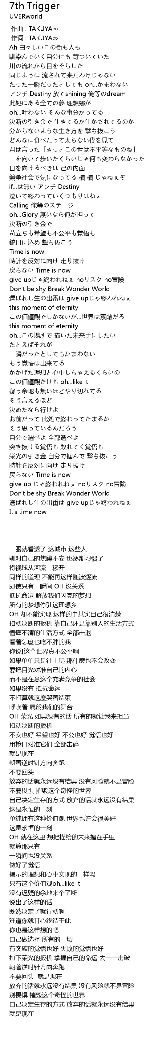 | [00:01.00] | 作词 : TAKUYA∞ |