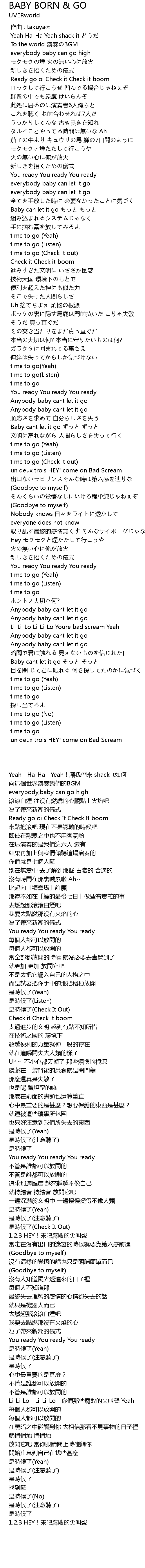 | 歌曲 | BABY BORN & GO |
