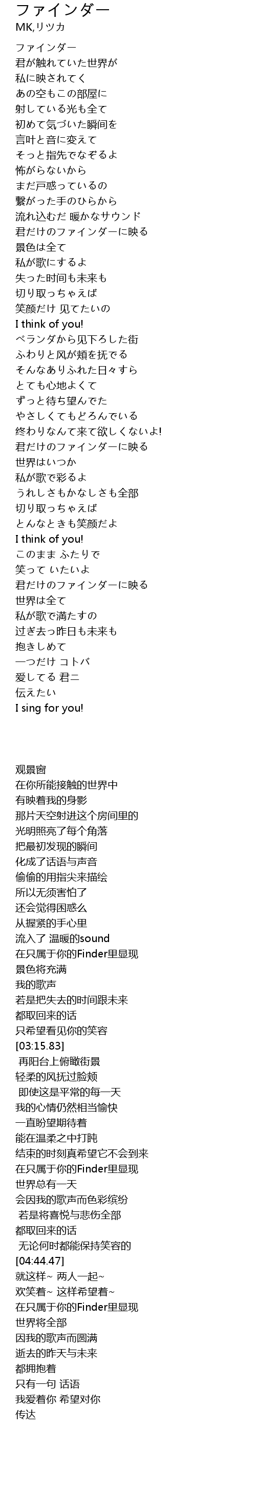| [04:13.55] | 在只属于你的Finder里显现 |
