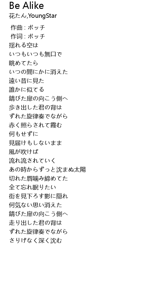 | [02:03.290] | あの時からずっと沈まぬ太陽 |