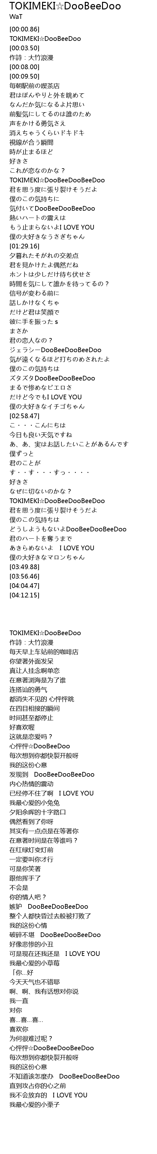 | [03:19.51] | TOKIMEKI DooBeeDooBeeDoo |