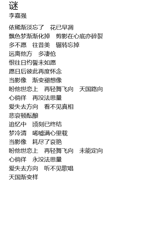 | 依稀渐淡忘了 花已早凋 | |