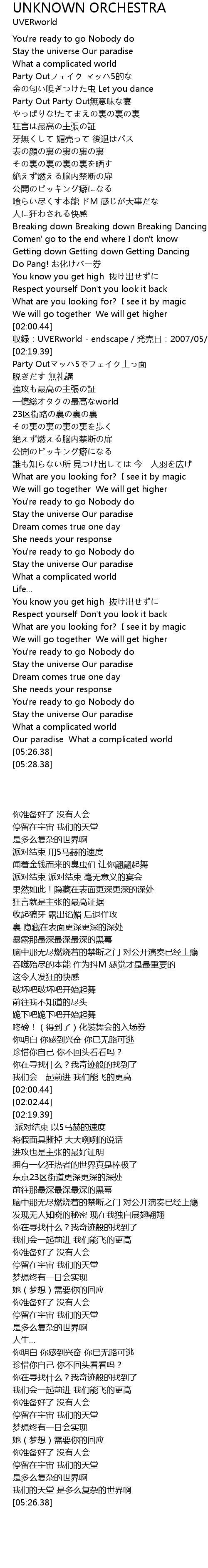 | [02:02.44] | 収録:UVERworld - endscape/発売日:2007/05/30 |