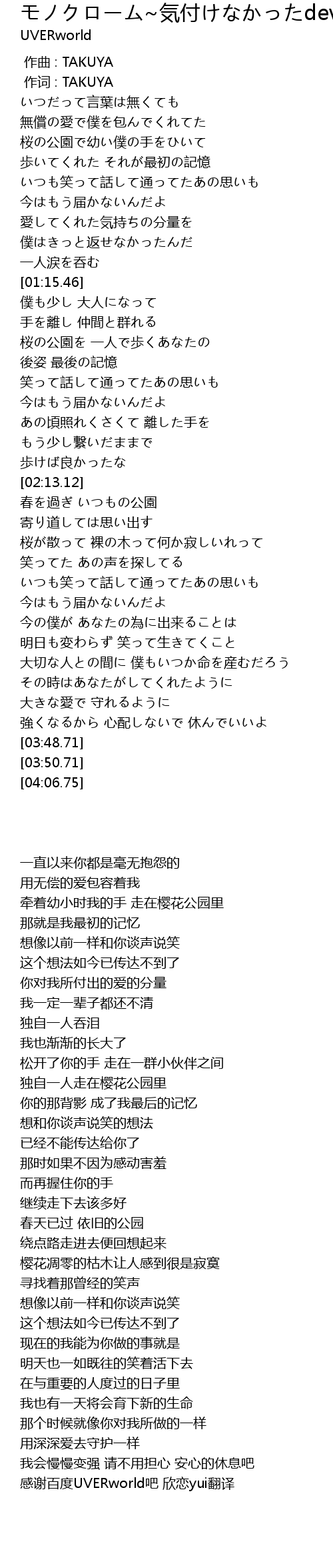 | [03:50.71] | 感谢百度UVERworld吧 欣恋yui翻译 |