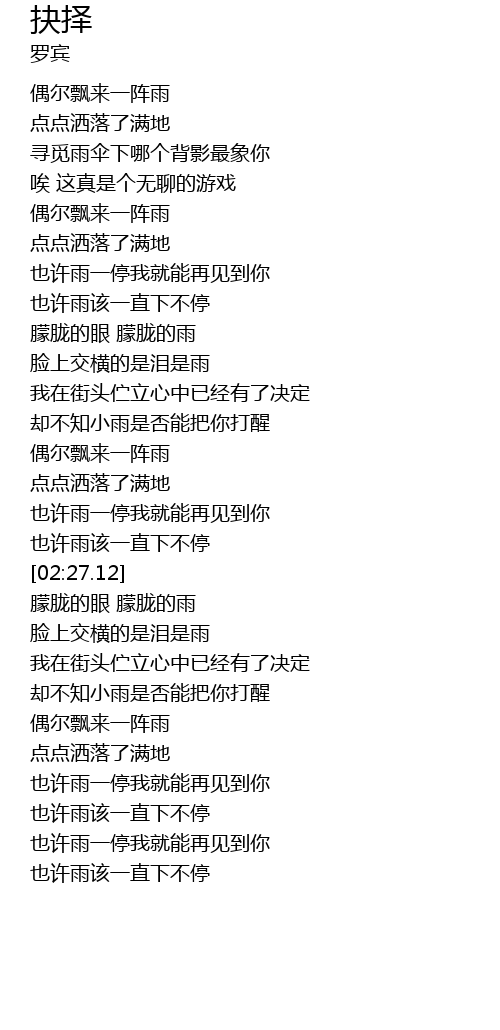 | [00:51.49] | 寻觅雨伞下哪个背影最象你 |