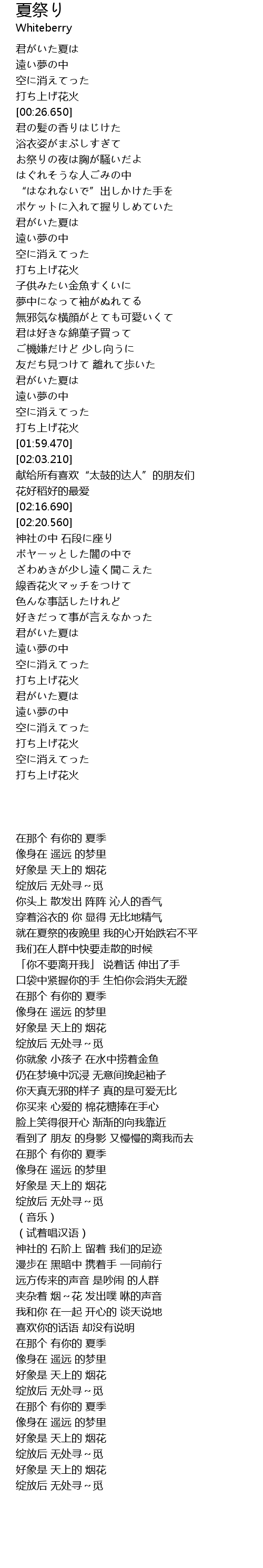| [00:38.210] | 就在夏祭的夜晚里 我的心开始跌宕不平 |