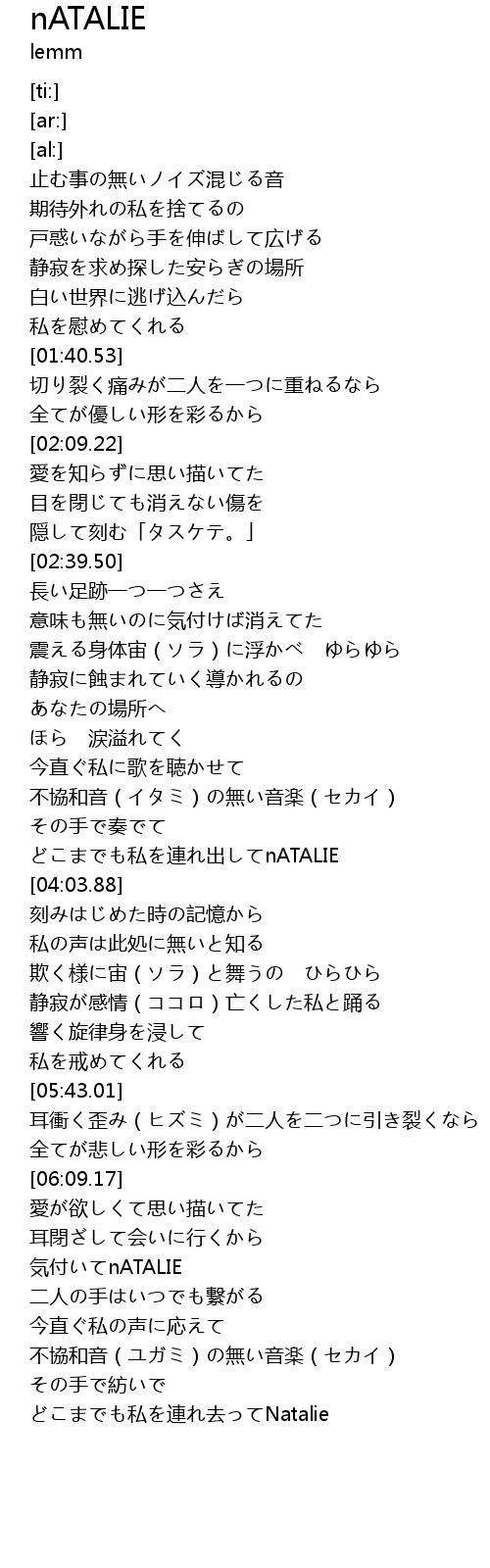 | [06:54.41] | 不協和音(ユガミ)の無い音楽(セカイ) |