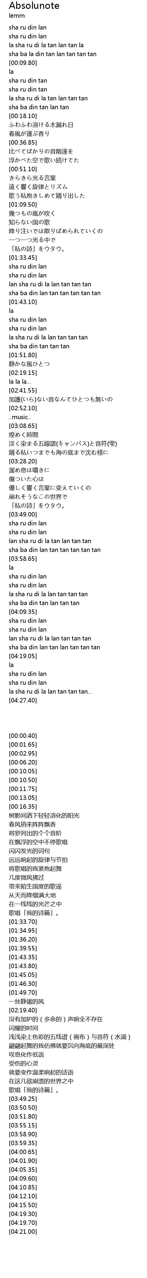| [04:15.50] | sha ba din lan tan lan tan tan tan |