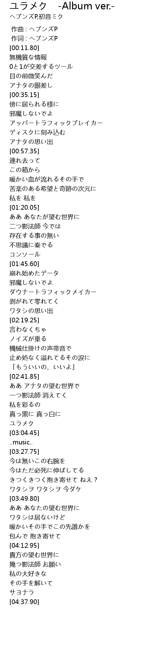 | [03:03.30] | ユラメク |