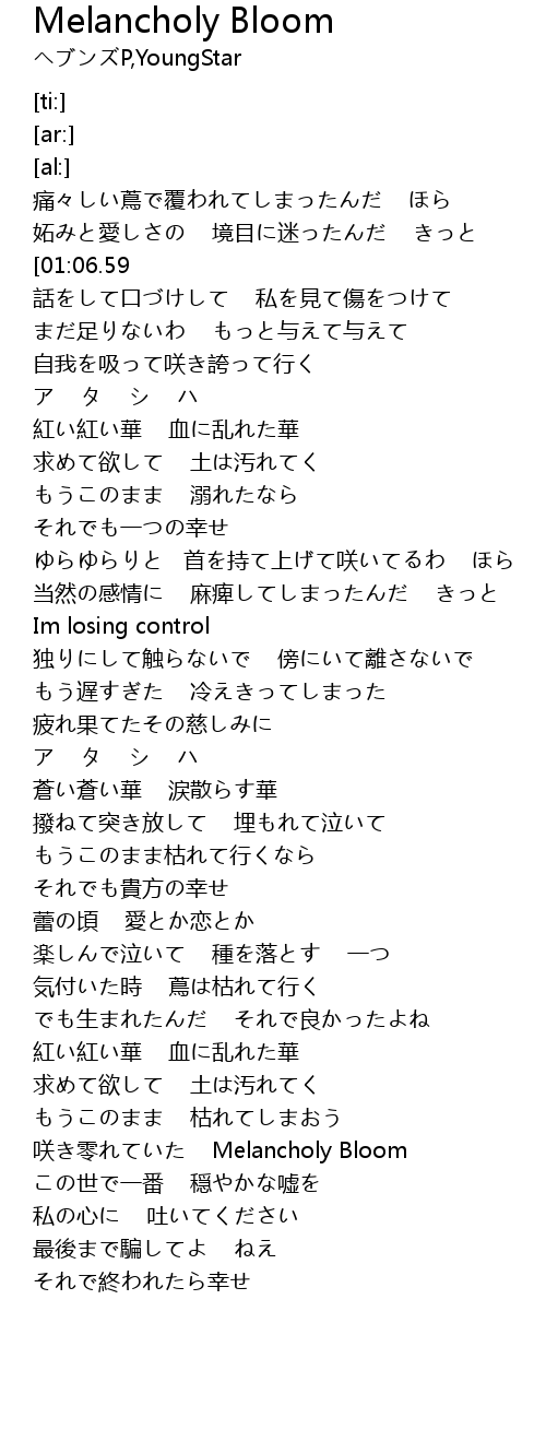 | [04:35.66] | 咲き零れていた Melancholy Bloom |