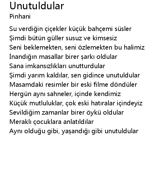 | Şimdi yarım kaldılar, sen gidince unutuldular | |