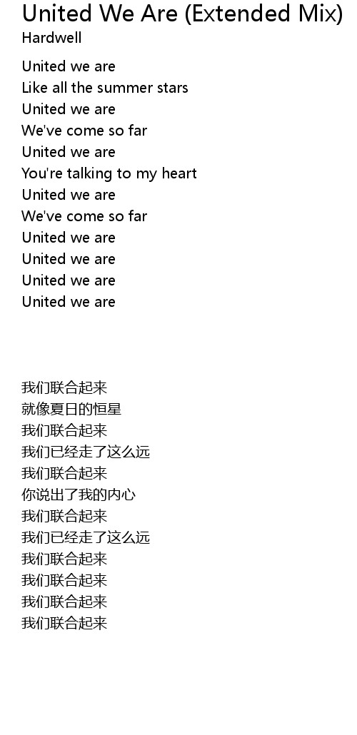 | 歌曲 | United We Are (Extended Mix) |