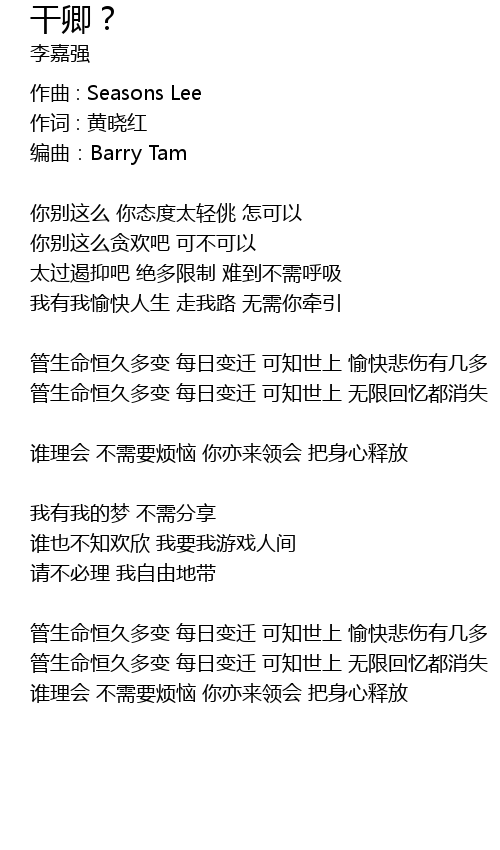 | 我有我愉快人生 走我路 无需你牵引 | |