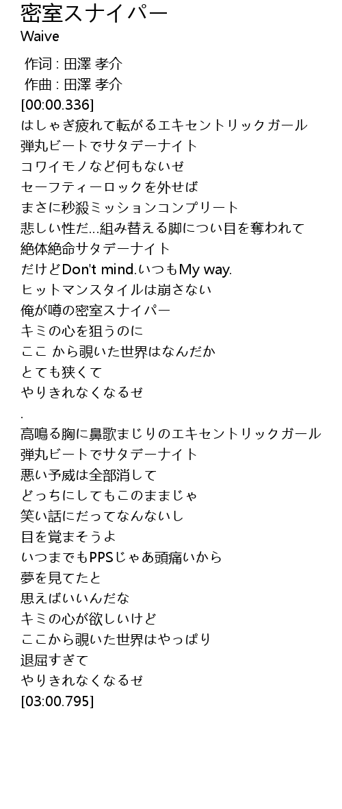 | [00:00.000] | 作词 : 田澤 孝介 |