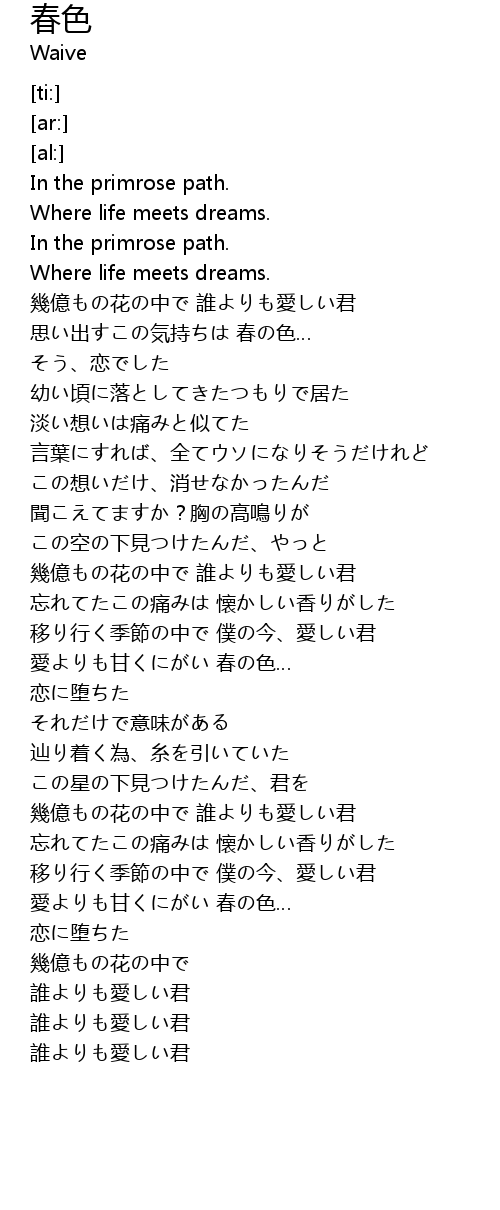 | [03:37.19] | 愛よりも甘くにがい 春の色… |