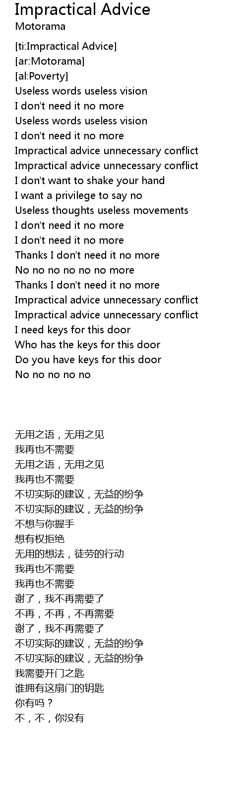 [ti:Impractical Advice] |