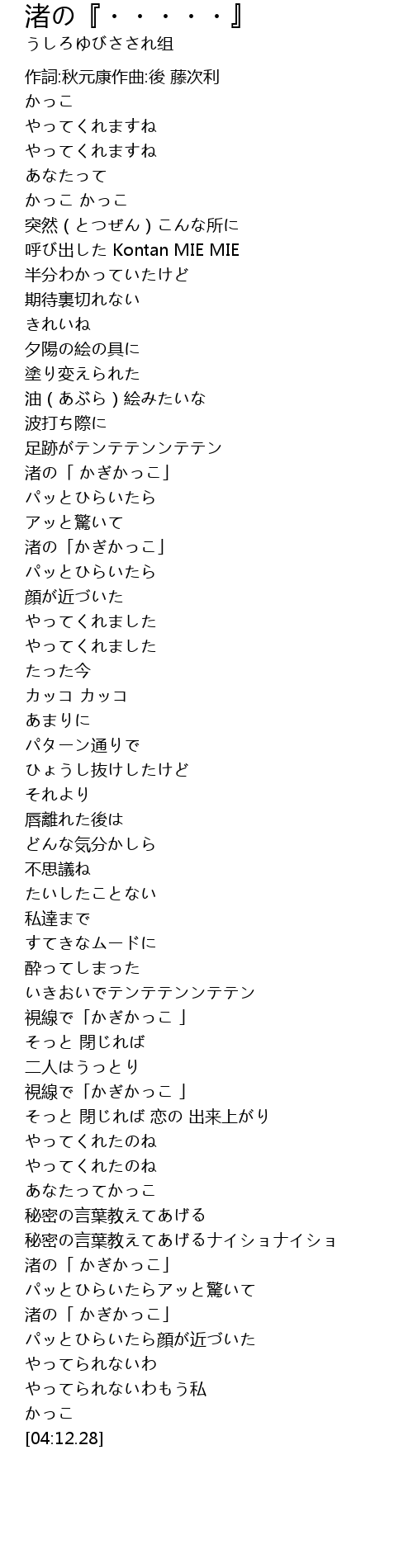 | [01:19.29] | 渚の「かぎかっこ」 |