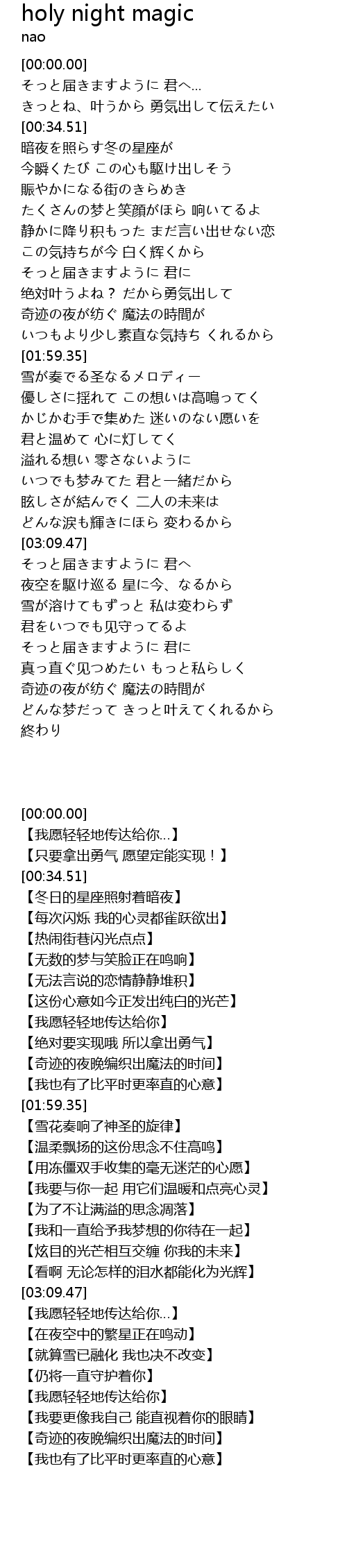 | [01:42.36] | 【奇迹的夜晚编织出魔法的时间】 |