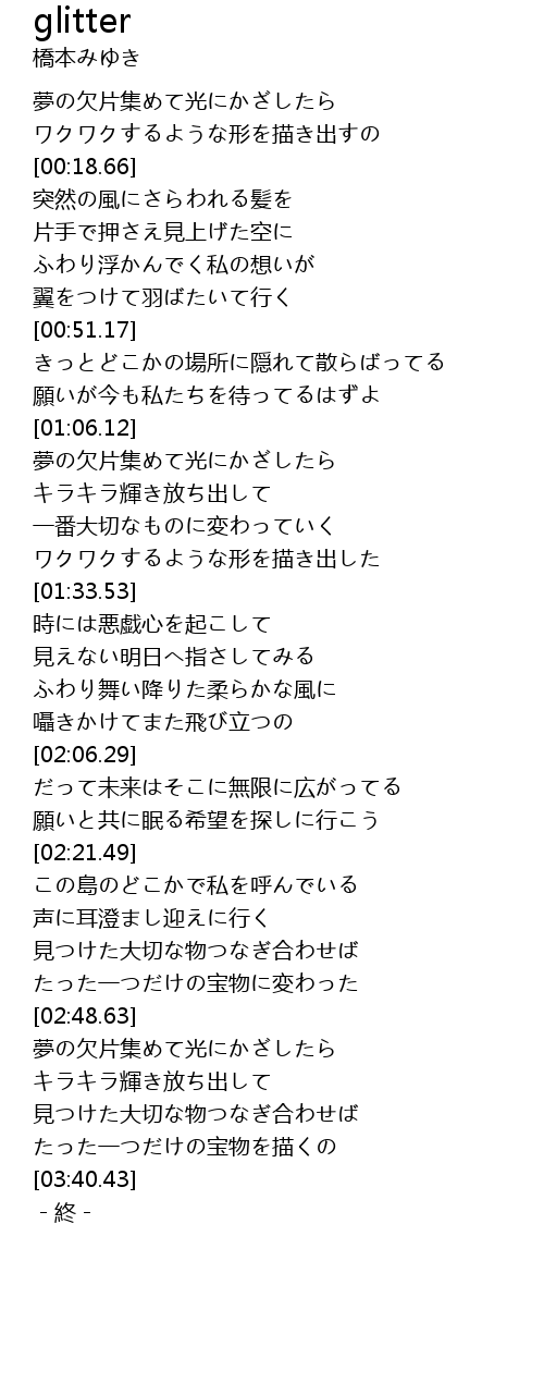 | [03:20.86] | キラキラ輝き放ち出して |