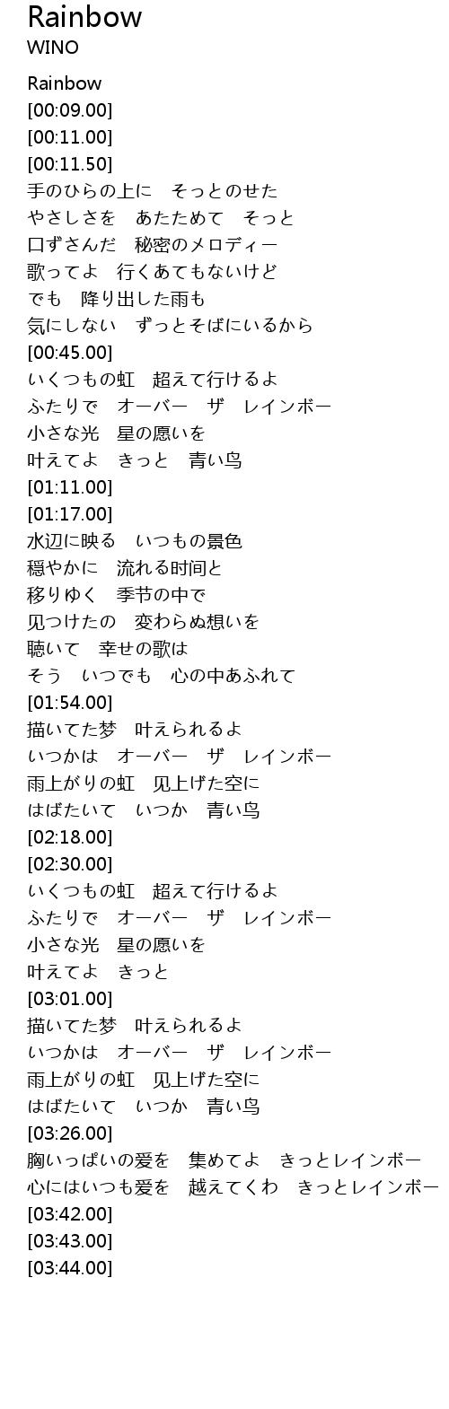 | [03:09.00] | いつかは オーバー ザ レインボー |