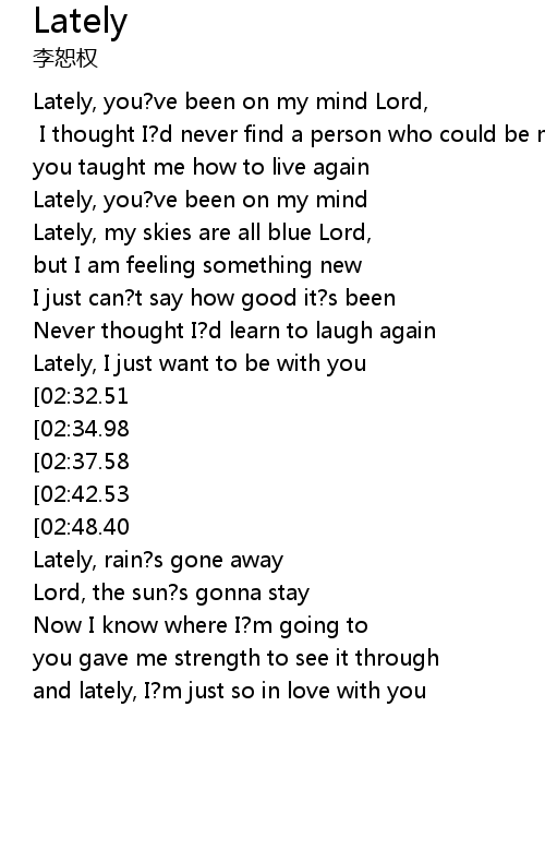 | [00:14.18] | Lately, you?ve been on my mind Lord, |